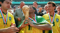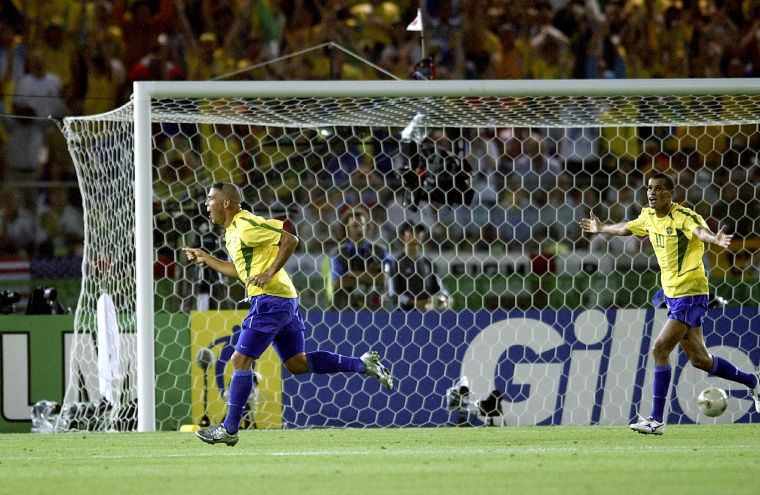 8 de 16Ronaldo e Rivaldo comemoram gol na final contra a Alemanha na Copa do Mundo de 2002 - 30/06/2002 • Tim de Waele/Corbis via Getty Images