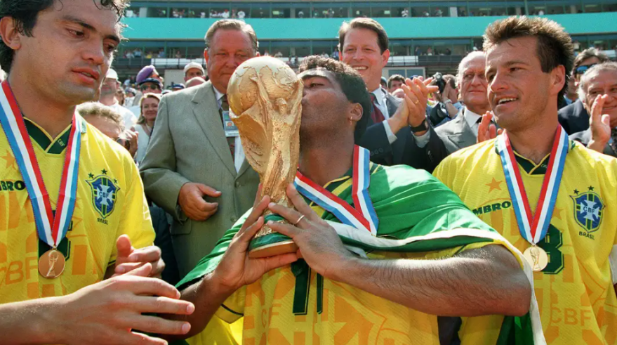 10 de 16Romário levantando taça da Copa do Mundo de 1994 • Imagem: Reprodução | Internet